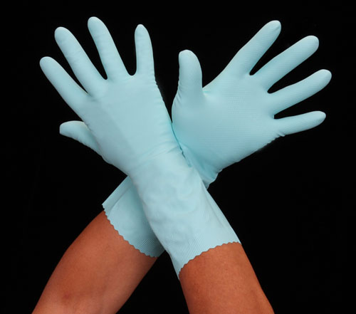 ●食品加工など食品に直接觸れる作業でも使用可能。●滑り止め加工付●サイズ…M●全長…320mm●厚み…0.4mm●掌周り…205mm●中指長さ…79mm●材質…樹脂部:ニトリルゴム、繊維部:レーヨン