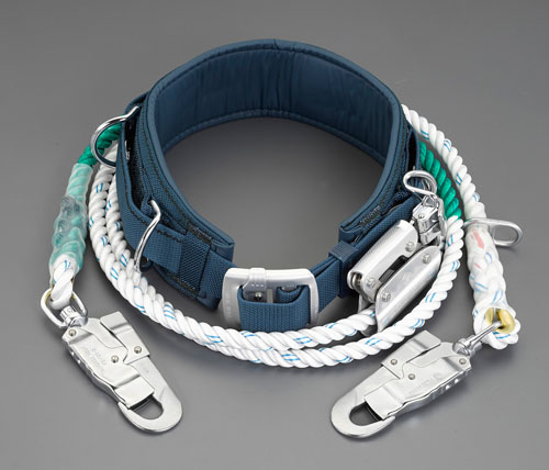 ●胴ベルト…45×1,200mm●補助ベルト…100×700mm●ロープサイズ…φ16×3,300mm(フック含む)●重量…2,250g●作業中のロープ掛け替え時に、無胴綱狀態が発生しません。