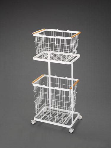●※注意※…【お客様組立品】●材質…ワゴン:スチール、バスケット:スチール(ユニクロメッキ?粉體塗裝)、天然木キャスター:ナイロン●バスケットサイズ…上段:415×310×270(H)㎜、下段:415×310×385(H)mm●耐荷重…上段?下段:6kg●キャスター付●サイズ…400(W)×290(D)×940(H)mm●キャスター…固定×2、固定(ストッパー付)×2