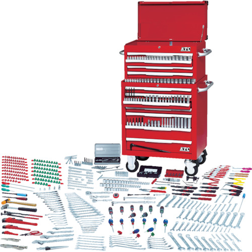 藤野優勢供應日本日本京都KTC ,KTC日本京都株式會社成立于195O年,產品種類約7,000種,KTC作為制造廠家,其最大特點是:具備從原材料的切削工程,包括鍛造,沖床等的可塑性加工及切削等..可應對一般機械、裝置、建機、重型機、汽車等所有機械類的整修。高機械工具套裝是包含了豐富整備所需工具的系列最高級的套裝。適用于用途汽車維修、機械維修的最佳商品規格、規格盒顏色:紅組內容(點):431箱尺寸