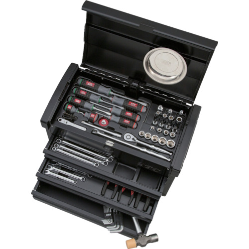 .特點新穎的顏色&風格使人聯想到魅力引擎的頭蓋,個性突出,采用了實現了富余的收納量的國際象棋“EKR-100GBK”(黑色)。在狹窄的地方設置了方便的小技巧的條款,板棘輪替換驅動程序組,快速旋轉器,帶磁鐵的零件托盤等方便的裝飾品。套接字是標準的,除了深色外還加入了六角比特套接字,可以對應各種各樣的工作狀態。充分利用國際象棋頂端的深度,采用了插塞、插接線器、萬向接頭等驅動工具類的立起來收納的新型托盤。用途各種機械整備用。商品規格、規格差込角9.5mm、情況:EKR-100GBK(黑色)殼色:黑色×黑色盒子尺寸(mm)間隙×深度×高度:510×275×325套內容(點):66